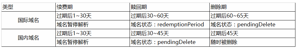 域名到期后續(xù)費(fèi)、贖回的規(guī)則請(qǐng)您參考以下列表: