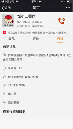 商家可以設(shè)置營(yíng)業(yè)時(shí)間,配送范圍、時(shí)間、方式及店鋪圖標(biāo),展示店鋪形象名片
