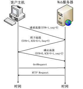 圖1 TCP三次握手:數(shù)據(jù)段互換 Client發(fā)送連接請求報文,Server接受連接后回復(fù)ACK報文,并為這次連接分配資源。Client接收到ACK報文后也向Server發(fā)送ACK報文,并分配資源,這樣TCP連接就建立了。前兩次握手,是為了保證服務(wù)端能收接受到客戶端的信息并能做出正確的應(yīng)答;后兩次握手,是為了保證客戶端能夠接收到服務(wù)端的信息并能做出正確的應(yīng)答。建立完TCP三次握手后,Client就可以和Web服務(wù)器進(jìn)行通信了。 在DoS攻擊中,攻擊者通過偽造ACK數(shù)據(jù)包,希望Server重傳某些數(shù)據(jù)包,Server根據(jù)TCP重轉(zhuǎn)機(jī)制,進(jìn)行數(shù)據(jù)重傳。攻擊者利用TCP協(xié)議缺陷,通過發(fā)送大量的半連接請求,耗費(fèi)CPU和內(nèi)存資源。實(shí)現(xiàn)方式如下圖: