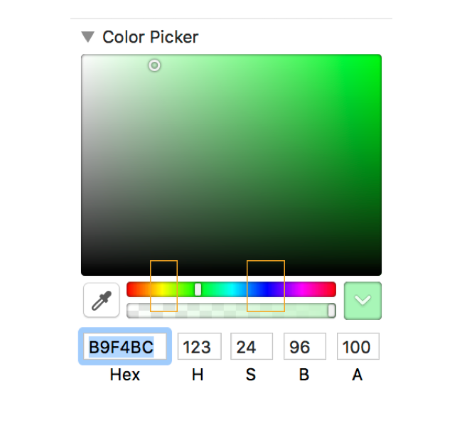 因?yàn)橄胍O(shè)計(jì)一個(gè)更深的底板背景顏色#B9F4BC(圓形背景),并應(yīng)用到文件夾圖標(biāo)中。這個(gè)時(shí)候就需要把顏色選擇器移動(dòng)到最近的RGB方向(在這個(gè)例子中是藍(lán)色)。但是如果想要一個(gè)更淺的文件夾,就需要把顏色選擇器往左邊移,靠近CMY方向(在這個(gè)例子中是黃色)