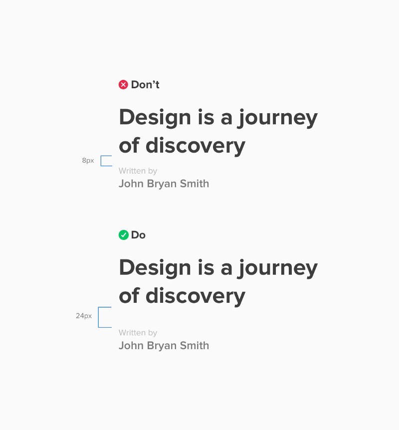 以我上面的例子來(lái)看,我的目標(biāo)是要把標(biāo)題和作者區(qū)分開,用一個(gè)更大的24px作為間隔會(huì)更加合適。